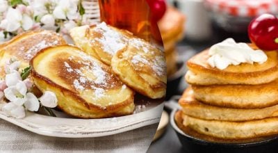 Æblepandekager – opskrift / collage: My, foto: depositphotos.com/