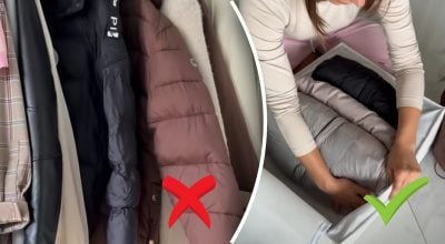 For at undgå, at jakkerne fylder halvdelen af din garderobe, kan du bruge et interessant life hack. Link kopieret Sådan opbevarer du vinterjakker / Collage
